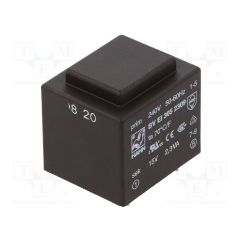 HAHN BV EI 305 2309 | Трансформатор: литий; 2,3ВА; 240ВAC; 15В; 153мА; PCB; BVEI
