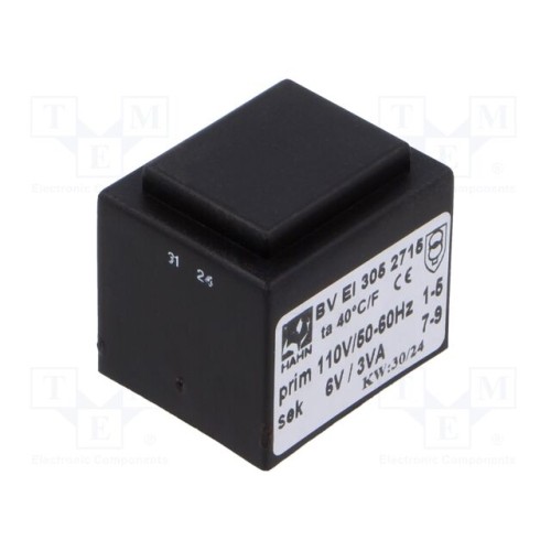HAHN BV EI 305 2715 | Трансформатор: литий; 3ВА; 110ВAC; 6В; 500мА; PCB; BVEI