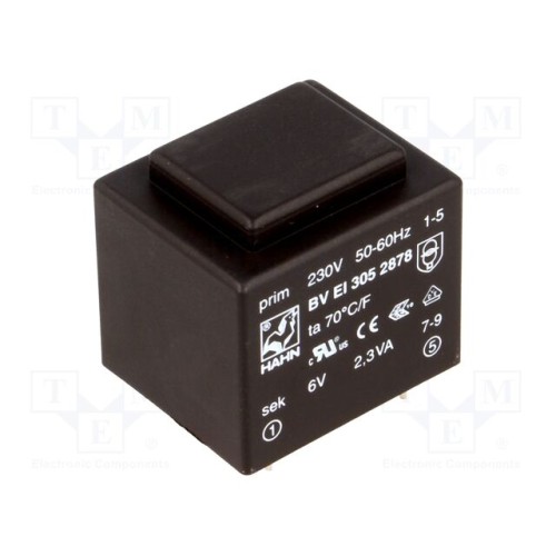 HAHN BV EI 305 2878 | Трансформатор: литий; 2,3ВА; 230ВAC; 6В; 383мА; PCB; BVEI