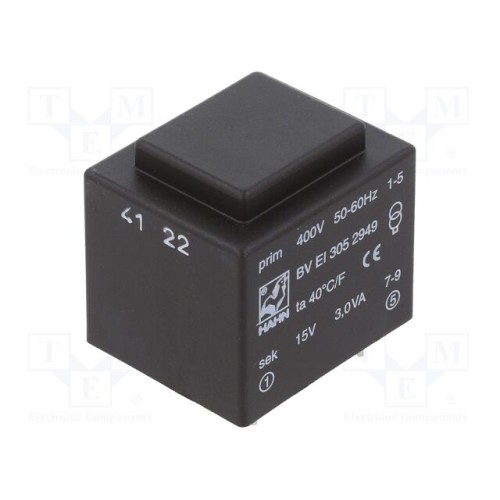 HAHN BV EI 305 2949 | Трансформатор: литий; 3ВА; 400ВAC; 15В; 200мА; PCB; BVEI