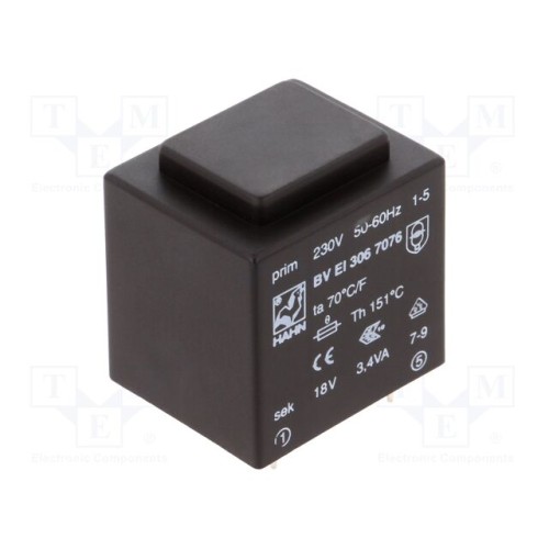 HAHN BV EI 306 7076 | Трансформатор: литий; 3,4ВА; 230ВAC; 18В; 189мА; PCB; BVEI