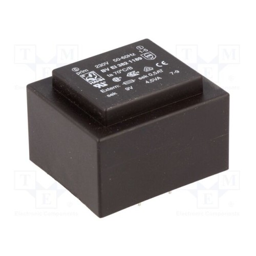 HAHN BV EI 382 1189 | Трансформатор: литий; 4,5ВА; 230ВAC; 9В; 500мА; PCB; BVEI