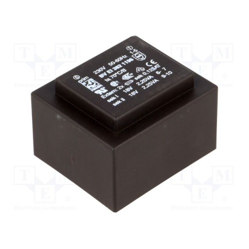 HAHN BV EI 382 1196 | Трансформатор: литий; 4,5ВА; 230ВAC; 18В; 18В; 125мА; 125мА; PCB