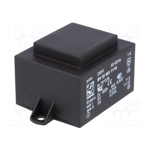 HAHN BV EI 481 1118 | Трансформатор: литий; 10ВА; 230ВAC; 9В; 9В; 556мА; 556мА; PCB; BVEI