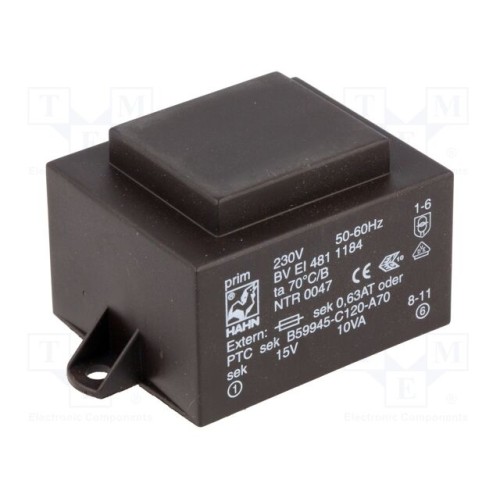 HAHN BV EI 481 1184 | Трансформатор: литий; 10ВА; 230ВAC; 15В; 667мА; PCB; BVEI