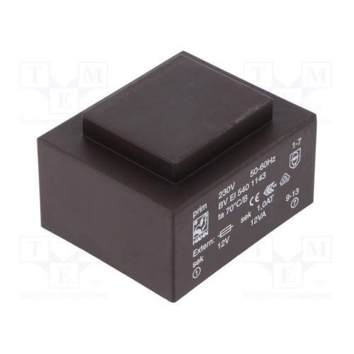HAHN BV EI 540 1143 | Трансформатор: литий; 12ВА; 230ВAC; 12В; 1А; PCB; BVEI; 74x47,3x35мм