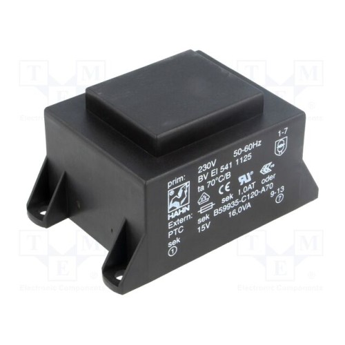 HAHN BV EI 541 1125 | Трансформатор: литий; 16ВА; 230ВAC; 15В; 1067мА; PCB; BVEI