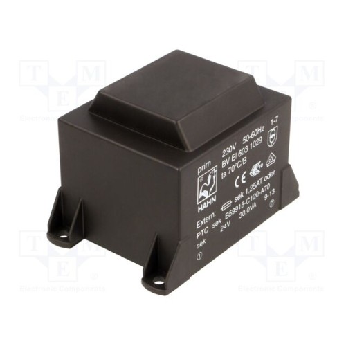 HAHN BV EI 603 1029 | Трансформатор: литий; 30ВА; 230ВAC; 24В; 1,25А; PCB; BVEI