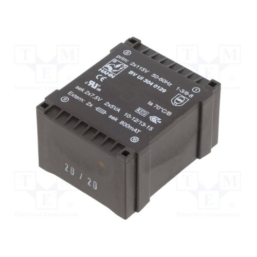 HAHN BV UI 304 0129 | Трансформатор: литий; 10ВА; 115ВACx2; 7,5В; 7,5В; 667мА; 667мА; PCB