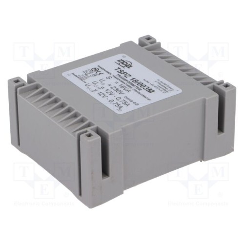 INDEL TSPZ18/003 | Трансформатор: литий; 18ВА; 230ВAC; 12В; 12В; 750мА; 750мА; PCB; IP00