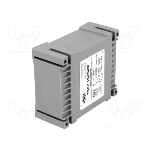 INDEL TSPZ18/004 | Трансформатор: литий; 18ВА; 230ВAC; 15В; 15В; 600мА; 600мА; PCB; IP00