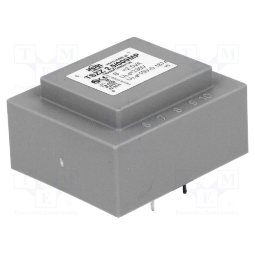 INDEL TSZZ2.5/009M | Трансформатор: литий; 2,5ВА; 230ВAC; 15В; 160мА; PCB; IP00; A: 41,4мм