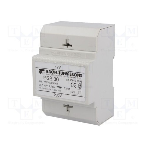 BREVE TUFVASSONS 16018-9996 | Трансформатор: мережевий; 30ВА; 230ВAC; 17В; Вив: затискна планка