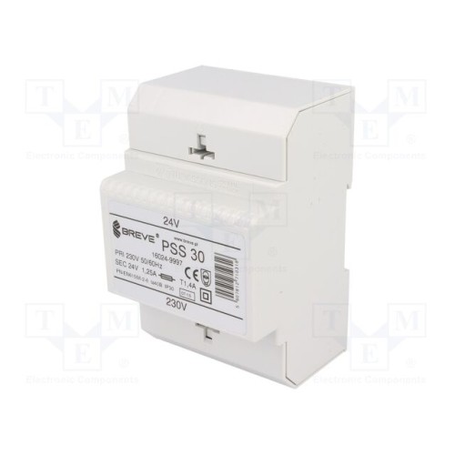 BREVE TUFVASSONS 16024-9997 | Трансформатор: мережевий; 30ВА; 230ВAC; 24В; Вив: затискна планка