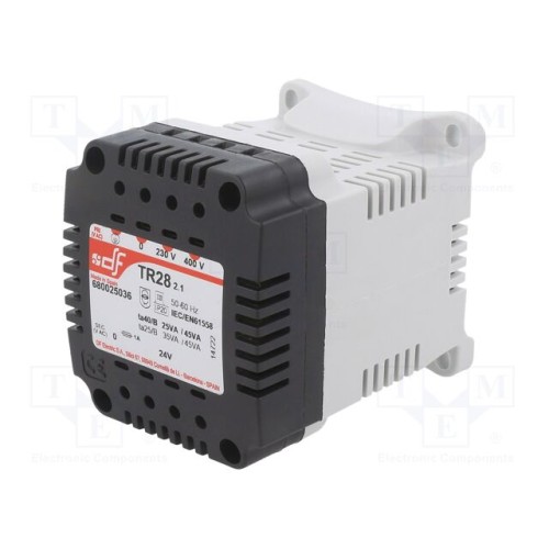 DF ELECTRIC 680025036 | Трансформатор: мережевий; 25ВА; 230ВAC,400ВAC; 24В; на шину DIN