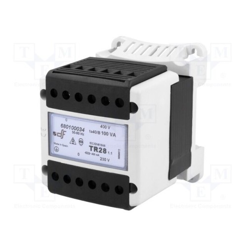 DF ELECTRIC 680100034 | Трансформатор: мережевий; 100ВА; 400ВAC; 230В; на шину DIN; IP20