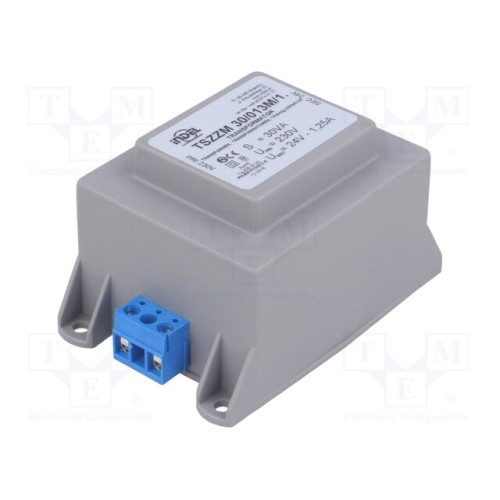 INDEL TSZZM 30/013M/1 | Трансформатор: литий; 30ВА; 230ВAC; 24В; 1,25А; гвинтовий; IP00