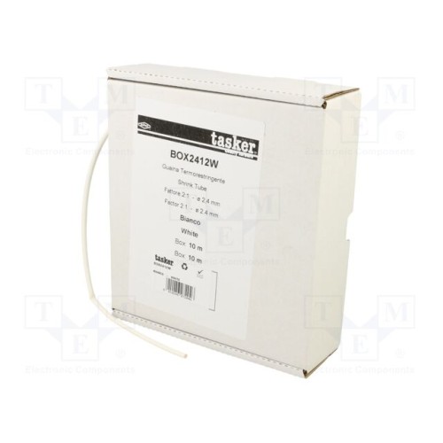 TASKER BOX 2412 W | Трубка термоусаджувальна; без клею; 2: 1; 2,4мм; L: 10м; білий