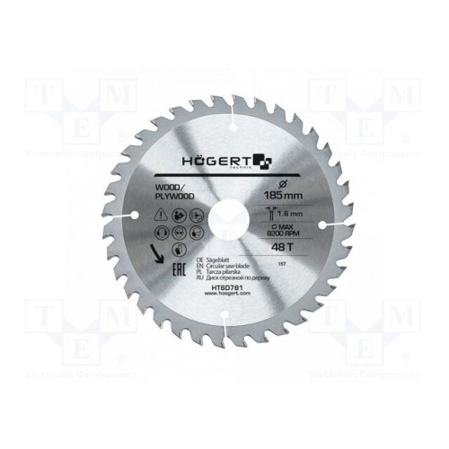 HÖGERT TECHNIK HT6D781 | Циркулярна пила; Ø: 185мм; W: 1,6мм; Зуби: 48; дерево,ДСП; 30мм