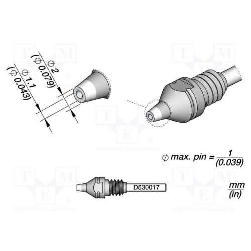 JBC TOOLS D530017 | Наконечник: для розпаювальників; 2x1,1мм