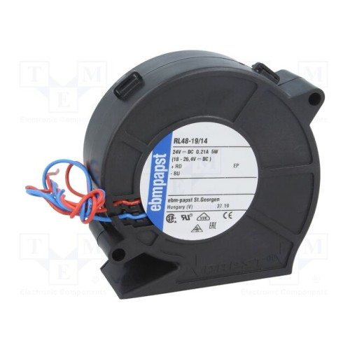 EBM-PAPST RL48-19/14 | Вентилятор: DC; blower; 24ВDC; 75x75x27мм; 28м3/г; 51дБА; кульковий