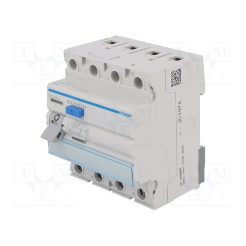 HAGER CDC463J | Аварійний вимикач; Iном: 63А; Iдіф: 30мА; Імпульсний струм: 250А