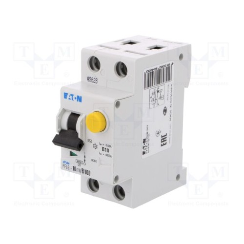 EATON ELECTRIC PFL6-10/1N/B/003 | Диференційний вимикач; Iном: 10А; Iдіф: 30мА; Полюси: 1+N; 230ВAC