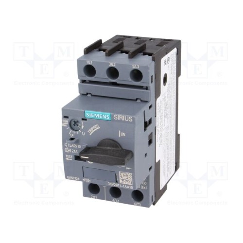 SIEMENS 3RV2011-1AA10 | Вимикач двигуна; 0,55кВт; 220÷690ВAC; на шину DIN; Розмір: S00