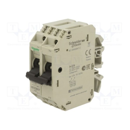 SCHNEIDER ELECTRIC GB2DB07 | Вимикач двигуна; 250ВAC; на шину DIN; IP20; -20÷60°C; Полюси: 2; 2А