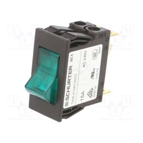 SCHURTER 4430.0392 | Вимикач максимального струму; 15А; Полюси: 1; SNAP-IN; TA45 2P