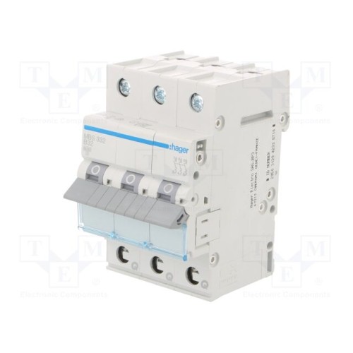 HAGER MBS332 | Вимикач максимального струму; 230/400ВAC; Iном: 32А; Полюси: 3