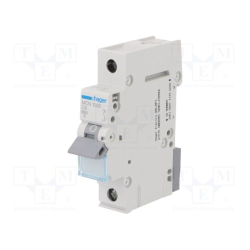 HAGER MCN106E | Вимикач максимального струму; 230/400ВAC; Iном: 6А; Полюси: 1