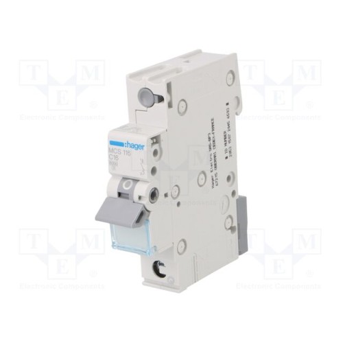 HAGER MCS116 | Вимикач максимального струму; 230/400ВAC; Iном: 16А; Полюси: 1