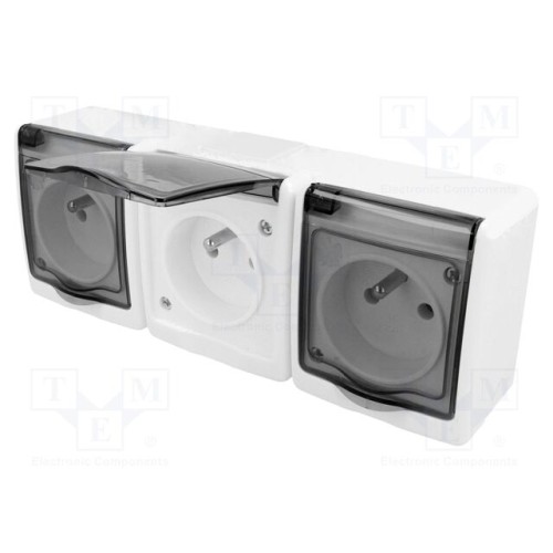PAWBOL D.3114GGG/1 | Роз’єм: живлення AC; гніздо; 2P+PE; 250ВAC; 16А; білий; накладний