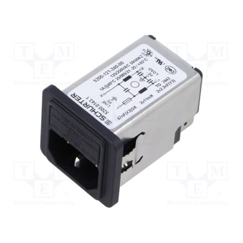 SCHURTER 5200.0143.1 | Роз’єм: живлення AC; гніздо; штекерний; 1А; 250ВAC; C14 (E); 5200