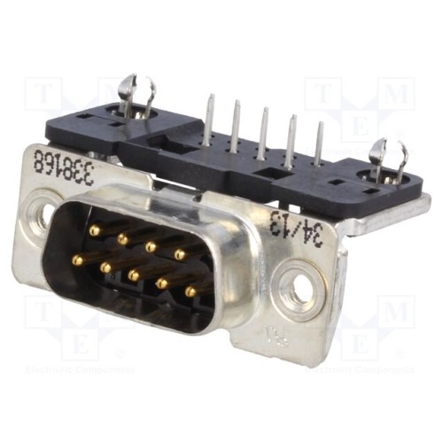 TE Connectivity 1-338168-2 | Роз’єм: D-Sub; PIN: 9; гніздо; штекерний; на PCB; кутове 90°; THT