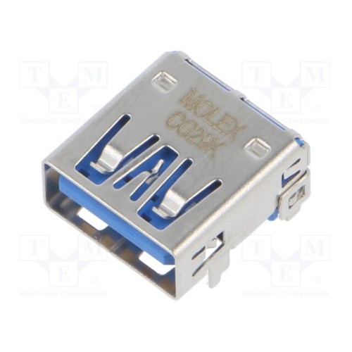 MOLEX 48393-0003 | Роз’єм: USB A; гніздо; на PCB; THT; PIN: 9; кутове 90°; USB 3.0