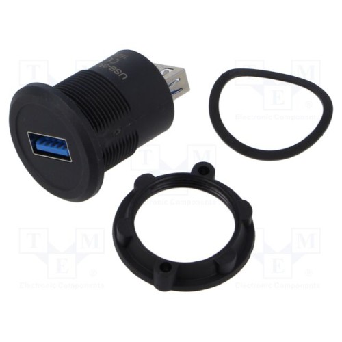 ONPOW USB-08C-BK | Адаптер; USB A гніздо,з обох сторін; на панель,задня гайка