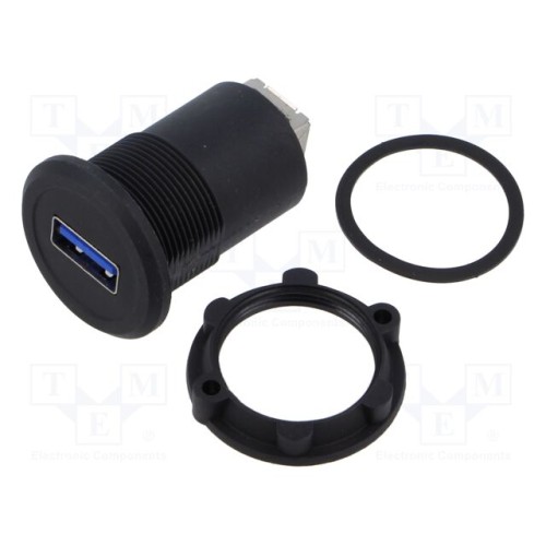 ONPOW USB-09C-BK | Адаптер; USB A гніздо,USB B гніздо; на панель,задня гайка