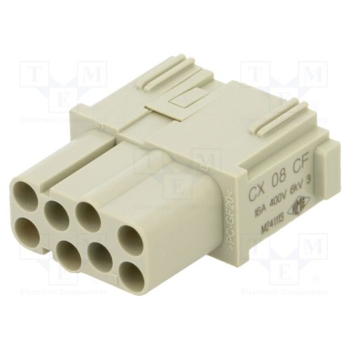 ILME CX 08 CF | Роз’єм: HDC; контактна вкладка; гніздовий; MIXO; PIN: 8; 16А; 600В