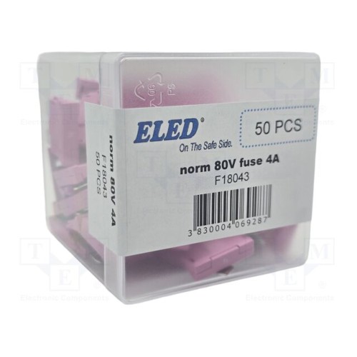 ELED F18043 | Запобіжник: плавка; 4А; 80ВDC; автомобільний; 19мм; 19x5,1x20мм