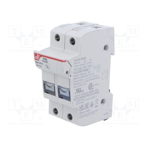 DF ELECTRIC 485104 | Гніздо; 10x38мм; на шину DIN; 32А; 690ВAC; Полюси: 2; 750ВDC; IP20