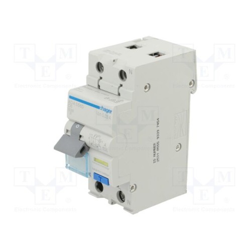 HAGER ADA556D | Диференційний вимикач; Iном: 6А; Iдіф: 30мА; Полюси: 1+N; 240ВAC