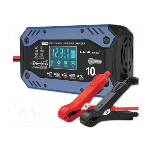 QOLTEC 52482 | Заряд.пристр: для акумуляторів; 10А; Вих: \"крокодил\"; 85%