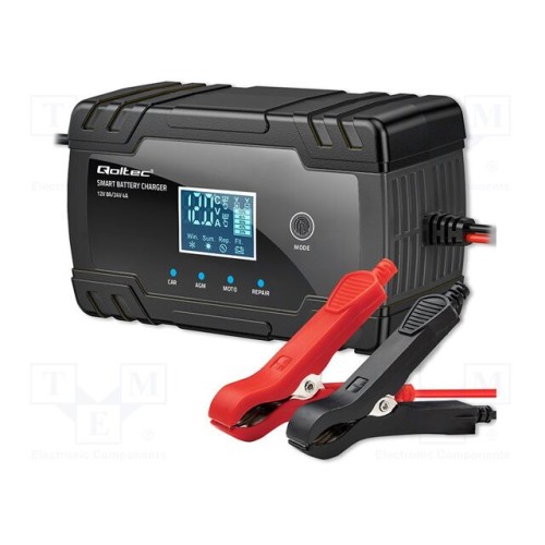 QOLTEC 52490 | Заряд.пристр: для акумуляторів; 8А; Вих: \"крокодил\"; 85%